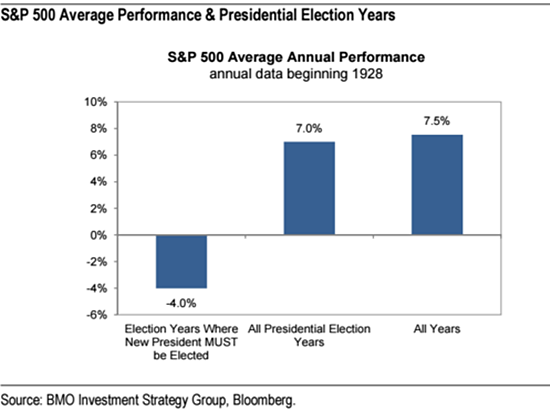 Belski还发现一个有趣的现象,当大选之年必须选出一个为新总统时,标普500指数平均下跌4%。今年美国必须选出一位新总统,因奥巴马的第二任任期今年结束。