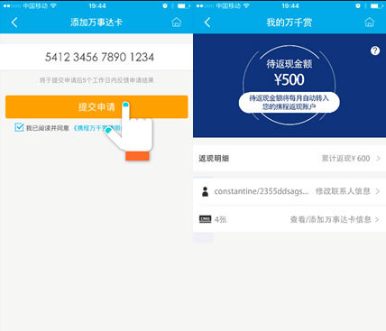 ![]() (Step 2:轻松注册后在合作商户刷卡消费,现金奖励将自动返至携程返现账户。)