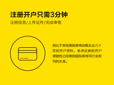 一是开户简单、高效。老虎证券精简了多达 50 多项的冗余调查问题,用户可以在 3 分钟创建交易账号,官方会在 72 小时内审核完毕。而通过传统渠道开户,这个过程需要两周。