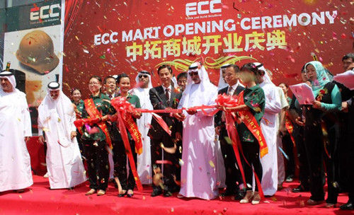 江苏 2013-09-18(中国商业电讯)--8月31日,位于阿联酋首都阿布扎比Mussafah工业区的中拓商城(ECC-Mart Abu Dhabi)举行盛大开业庆典。阿联酋文化、青年与社区发展部长纳哈扬·本·穆巴拉克(HHSheikh Nahyan bin Mubarak Al Nahyan)殿下、中华人民共和国驻阿联酋特命全权大使黄杰民共同出席了开业典礼。穆巴拉克殿下亲自为中拓商城开业剪彩。参加仪式的还有阿布扎比西部委员会主席奥贝德·艾·马扎维阁下(HE Obaid Al Mazroui)、中国建筑中东有限公司总经理余涛先生、中国贸促会驻海湾地区代表处首席代表张喜敬先生、阿联酋中国商会副会长徐小平先生、中航技国际工程阿联酋公司总经理刘国强先生、迪拜米拉斯集团中国投资办公室主任梁晓茜女士、中铁十八局集团有限公司总经理高金平先生、阿联酋奇猎国际旅行社总经理唐振纲先生、东星集团董事长蔡金星先生以及阿布扎比政府官员、中国驻阿使馆官员、阿联酋当地各大建筑公司高管、中国驻阿各大公司代表、供应商代表和各界媒体代表共约300余人。