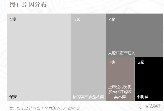 第二大原因是“标的资产质量不佳”,合计5单,这种情况下跨界并购失败不言而喻。