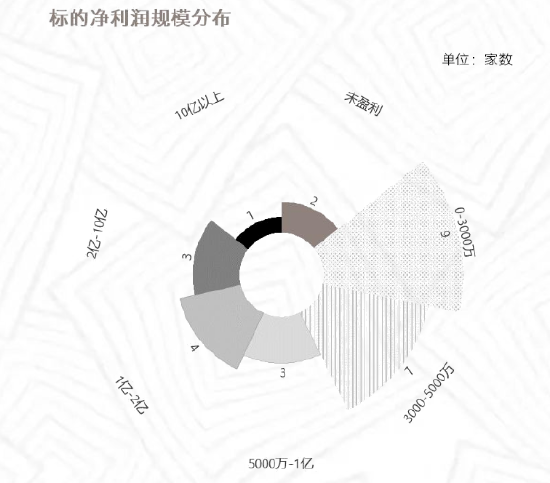 除5单未公告标的公司净利润数据即终止以及1单(万通发展)尚未披露标的公司财务数据外,其余29单标的公司报告期最近一年的净利润分布如下: