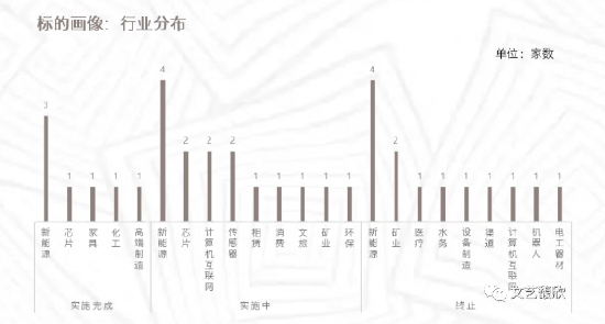 以wind新领域行业分类,标的企业行业分布较为分散,但总体聚焦为实体经济制造业,近年火热的新能源领域占比最高,为31.42%。