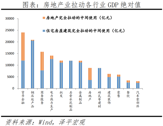 房地产带动几十个上下游产业链产值,房地产通过投资、消费既直接带动与住房有关的建材、家具、批发等制造业部门,也明显带动金融、商务服务等第三产业。根据国家统计局最新的2020年投入产出表,我们估算出广义的房地产业完全拉动上下游产业链GDP10.0万亿元、直接拉动上下游产业链GDP2.4万亿元。分行业看,货币金融、零售、钢压延、石膏水泥由广义房地产行业拉动的GDP增加值居前列,分别为8107亿元、4230亿元、3527亿元、2820亿元。陶瓷制品、砖瓦等建材、石膏水泥由房地产完全拉动的GDP占该行业总GDP占比最高,为51.2%、50.9%、47.1%。