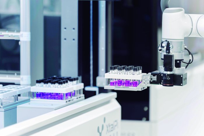 “公司自主研发的AI机器人实验工作站,并不只有单一规格,而是像乐高积木一样,由多个模块拼搭组合而成,可以适配多种真实研发场景,满足不同领域的实验需求,为各个行业的研发项目‘保驾护航’。”晶泰科技副总裁王明泰指着玻璃墙内的工站集群对记者说,有了人工智能的“智慧脑”和机器人的“灵巧手”,更多创新研发项目,得以规范实验流程、节省人力成本、缩短实验周期、提高实验效率。