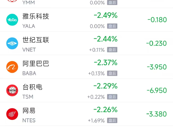 - 周二热门中概普跌,台积电跌2.29%,阿里巴巴跌2.37%