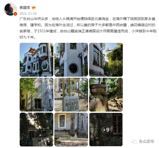 在台山市端芬镇庙边村,一处叫做翁家楼的建筑群,极具艺术欣赏和科学研究价值,堪称“中国洋楼别墅建筑的典范”。