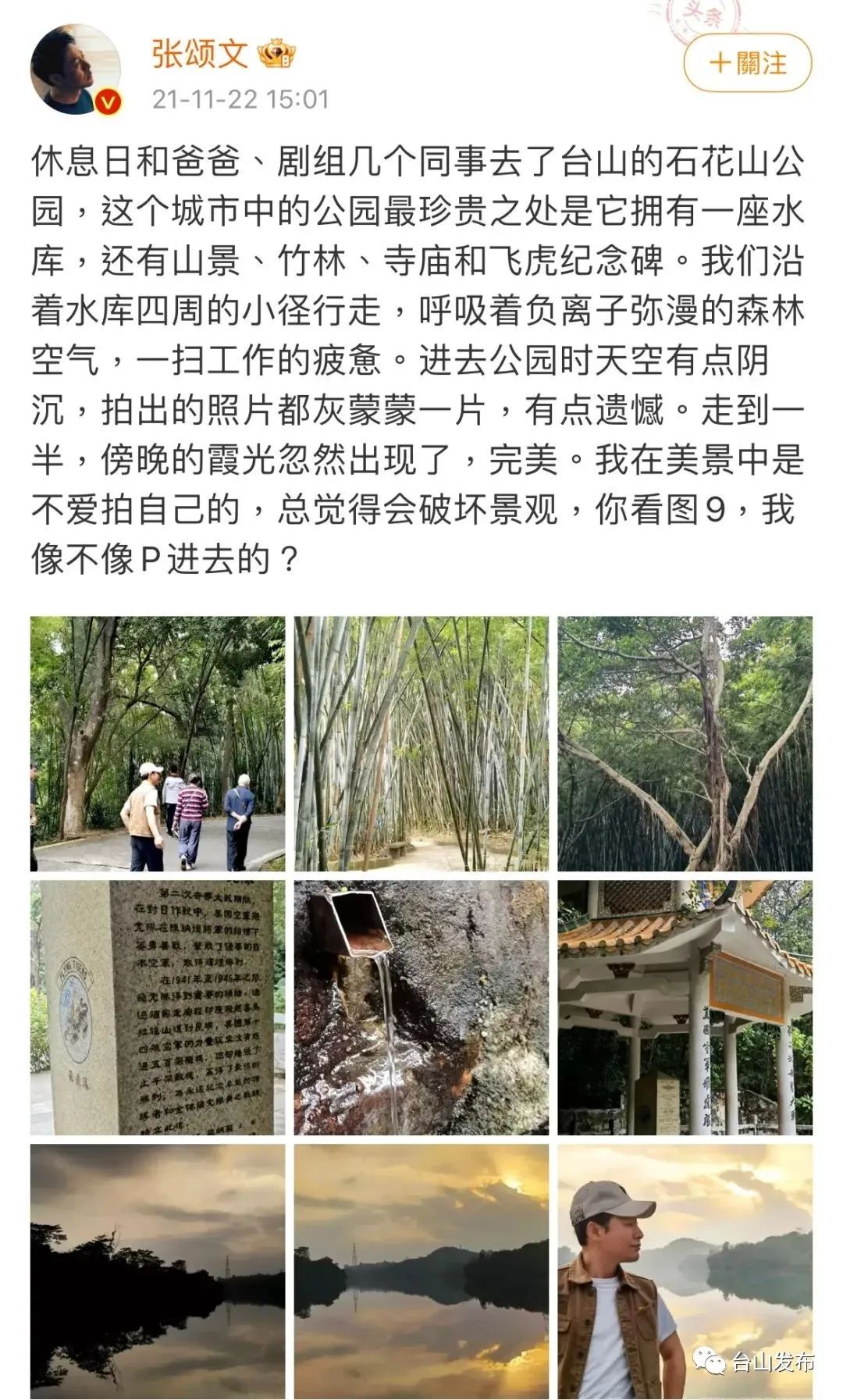记者搜索张颂文的个人微博发现,张颂文年轻时曾做过多年导游,还获得过“广东省最佳导游”的荣誉。值得一提的是,当年做一线导游时,张颂文曾带旅游团来过惠州,对惠州宾馆印象深刻。